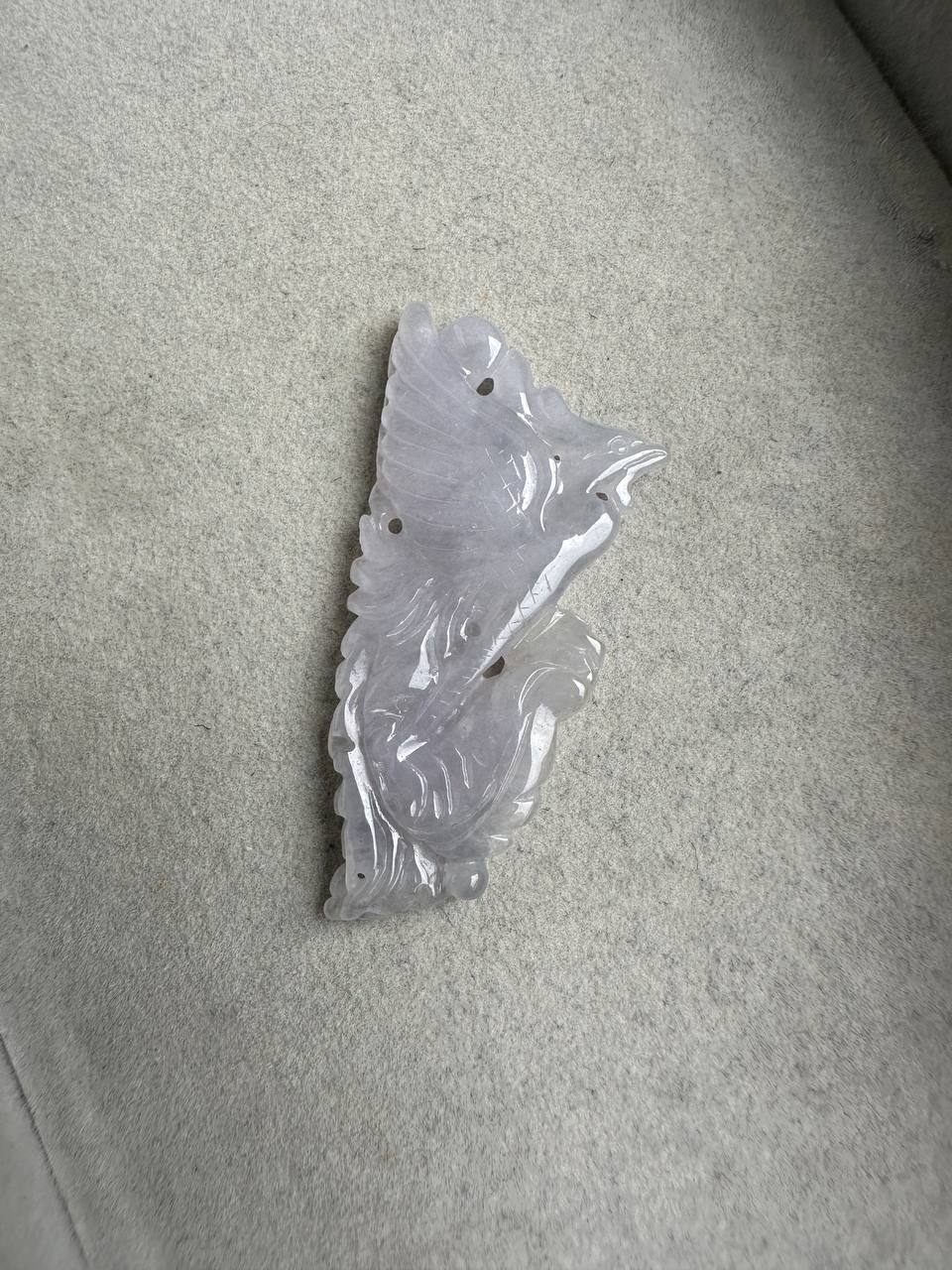 JA224002 Beauty & Grace | Mo Xi Sha Mine Burmese Grade A Icy Pale Lavender Jadeite in Phoenix Carving