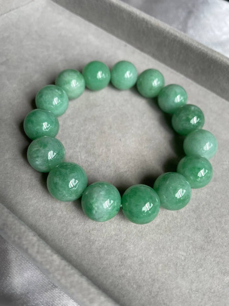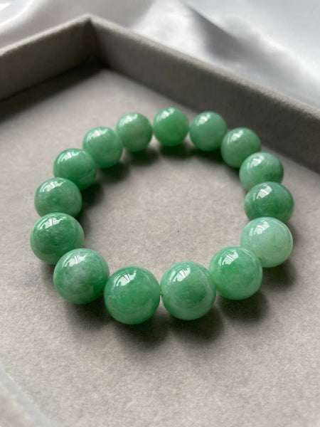 The highest green intensity jadeite jade we have currently with us. Each of the beads are huge with 13.7mm in size. Albeit the colours of each beads differ but it does not stop it from being a jaw dropping piece. Green jadeite jade has always carry the sense of grandeur and class and always been favoured by the royalty since ancient China. People believe that wearing green jadeite jade can prevent negative energy, bringing protection and good health for its wearer.