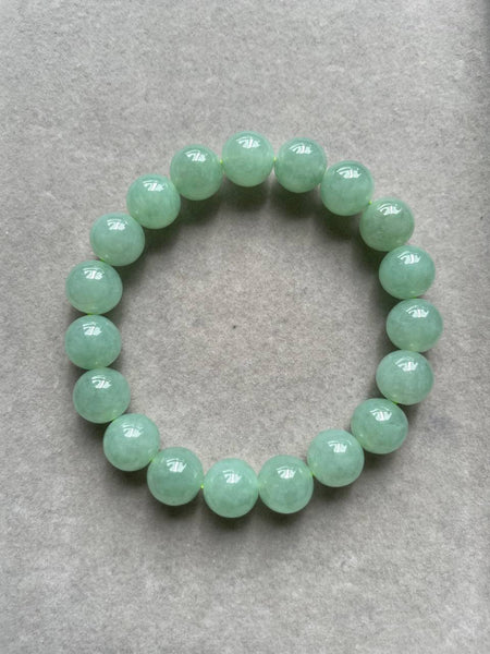 A very beautiful icy type jadeite jade with very good green colour to go along with it. This beads bracelet is very suitable for casual wears but may sometimes, catch the eye of many. The texture of these beads is still considered fine with good translucency. Ice shards can be seen however, the colour intensity of these beads bracelet is very strong which overpowers the shards formation.