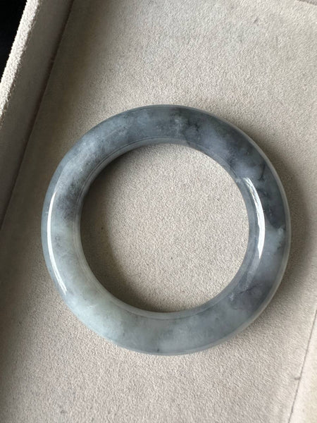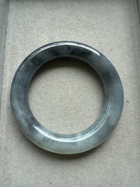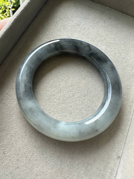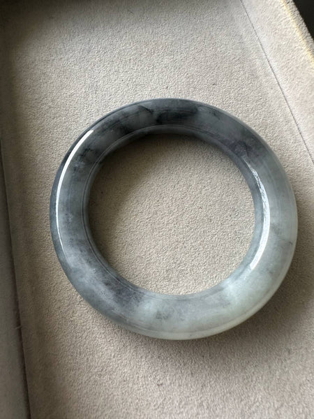 A wondrous piece to start the new year, enshroud yourself in the beauty of smoky black jadeite around the its round shape. This black jadeite bangle beautiful gradient seemingly a natural flow rather than being still, encapsulate the essence of calligraphy ink being dropped into clear water. Excellent piece with great thickness that shows modernity, statement, and attitude. No flaws can be seen from the bangle with no imperfect lines or cracks can be found. No unwanted dirty cottons can also be seen from this piece.