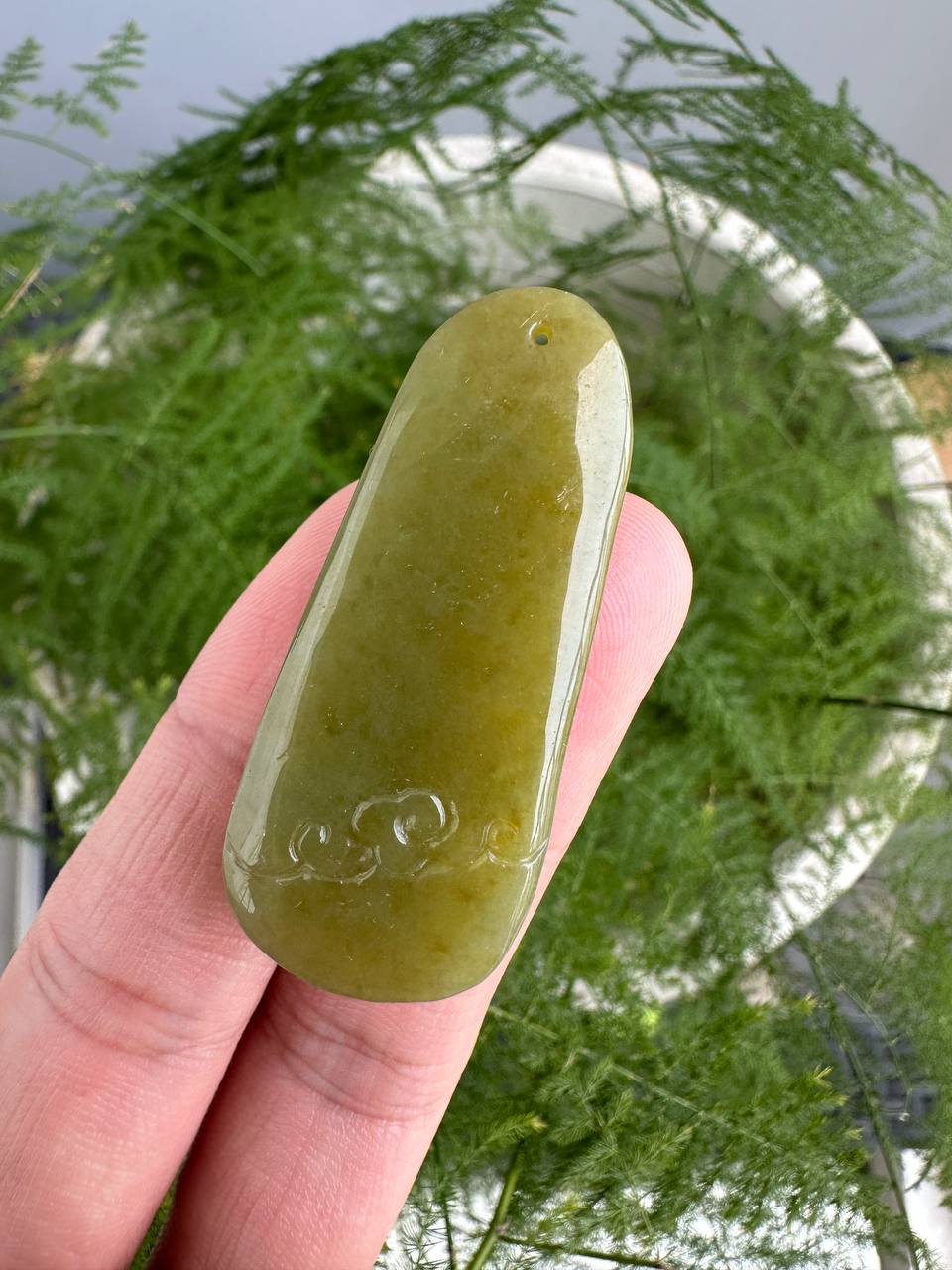 A dainty piece with a rare blend of colours. This piece of jadeite has a beautiful mixed of yellow and green making a great blend of a tea colour. With delicate carving of baby Buddha sitting on a lotus, it is a great piece to wear for those seeking elegant and dainty. Texture of jadeite is smooth and fine, with jelly-like surface. No unnecessary cottons and lines can be seen from the pendant.