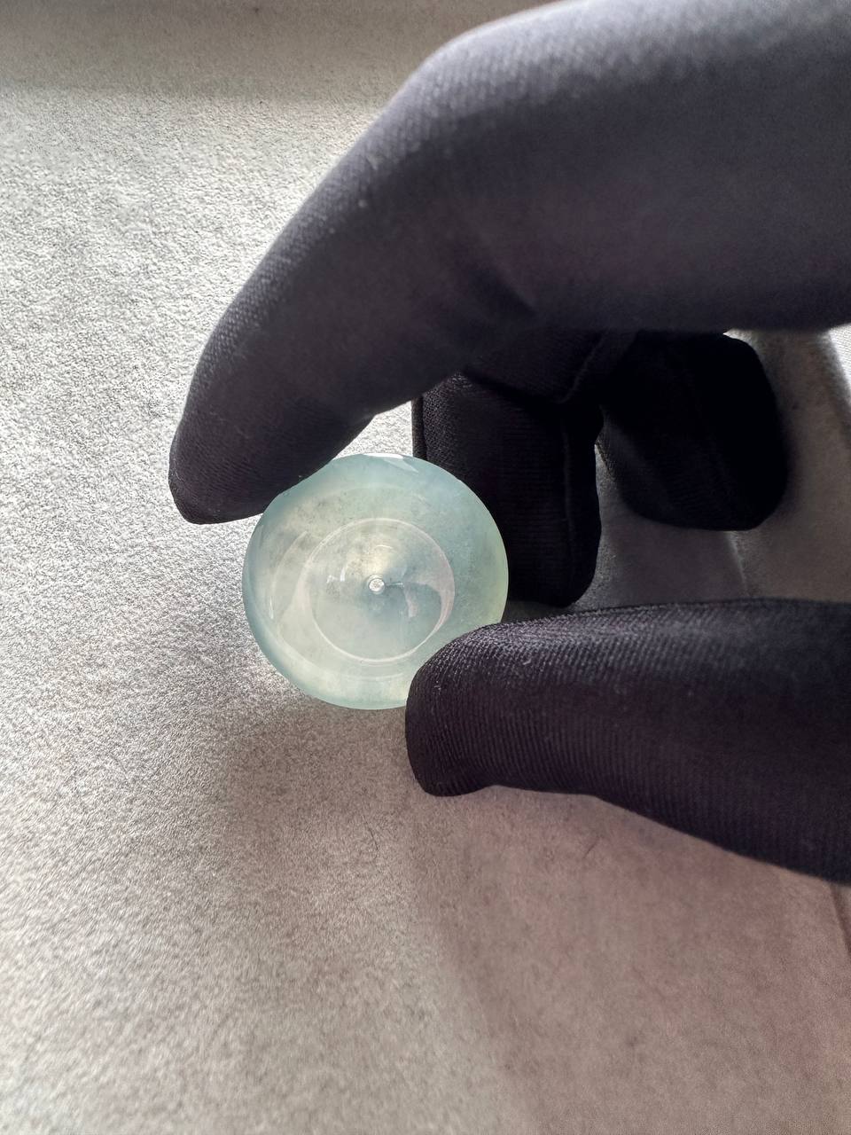 The donut shape is ever popular and timeless carving that represents safety for its wearer. It is also one of the best carvings to preserve the best part of the jadeite without compromising any of its material. This donut carving in particular has an exquisite piece of icy blue-green jade showcases a fine texture with a luminescent glow that does not come by often. Expertly carved, it is perfect for making dramatic statement jewelry pieces or can be tied with a quality string to make it into a necklace. The texture is very icy with very minimal cottons floating in the coin with great translucency, balanced it off with the good amount of thickness.